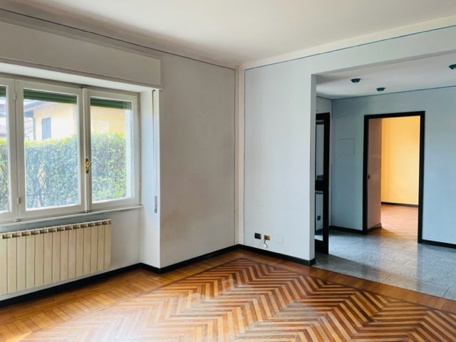 luminoso ingresso con ampia zona giorno, cucina separata ed abitabile, due camere da letto comunicanti, servizi (con box doccia), locale deposito sottostante, GIARDINO PRIVATO E POSTO AUTO