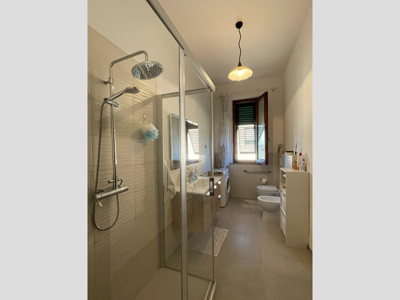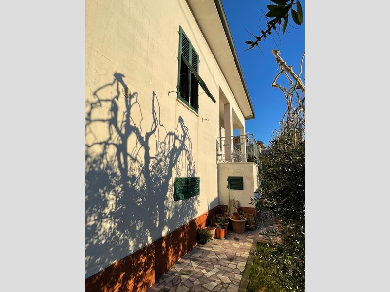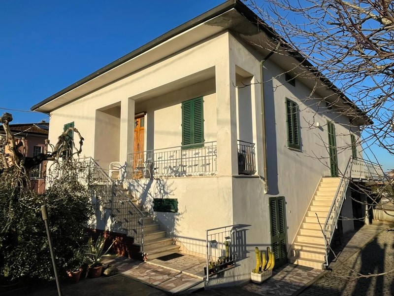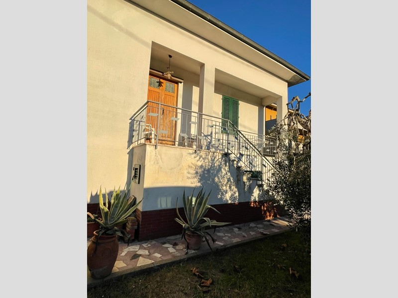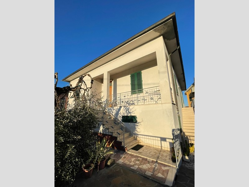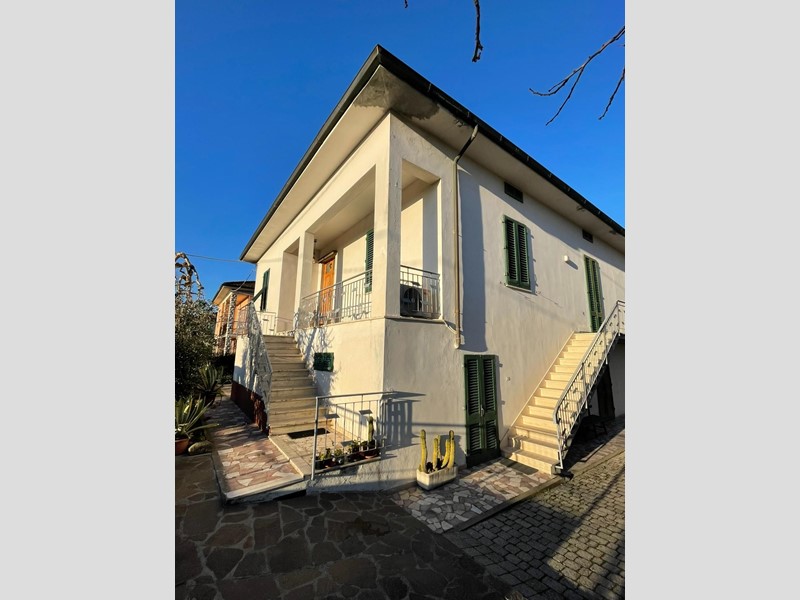 In zona residenziale, centrale, Villetta a due piani, libera su quattro lati, circondata da giardino e ampio resede lastricato per complessivi mq.250 circa, recintati e con accesso carrabile. L’abitazione, di 165 mq. circa, è composta al primo piano, al quale si accede da una scala esterna, da disimpegno, tre ampie stanze, una delle quali con accesso ad una loggia, cucina abitabile, disimpegno notte, due camere matrimoniali, ripostiglio e un bagno. Una scala interna permette di scendere al piano terra, di 110 mq. circa, dove si trovano alcuni locali di sgombero, un piccolo bagno, la cantina e un loggiato di 65 mq. circa. Completa la proprietà un garage.
