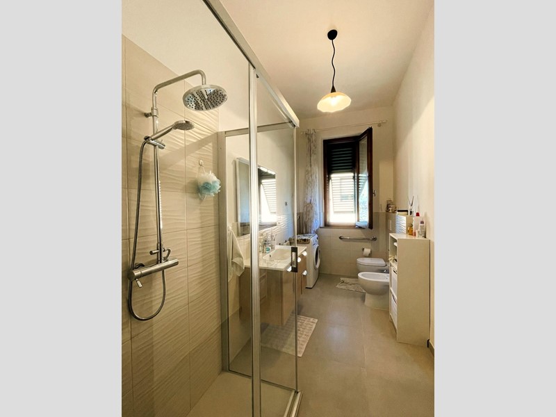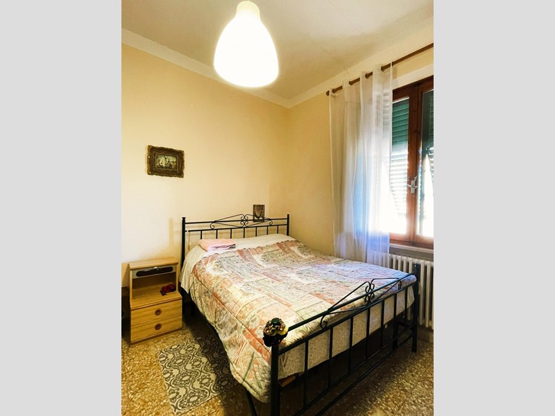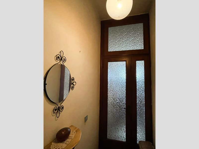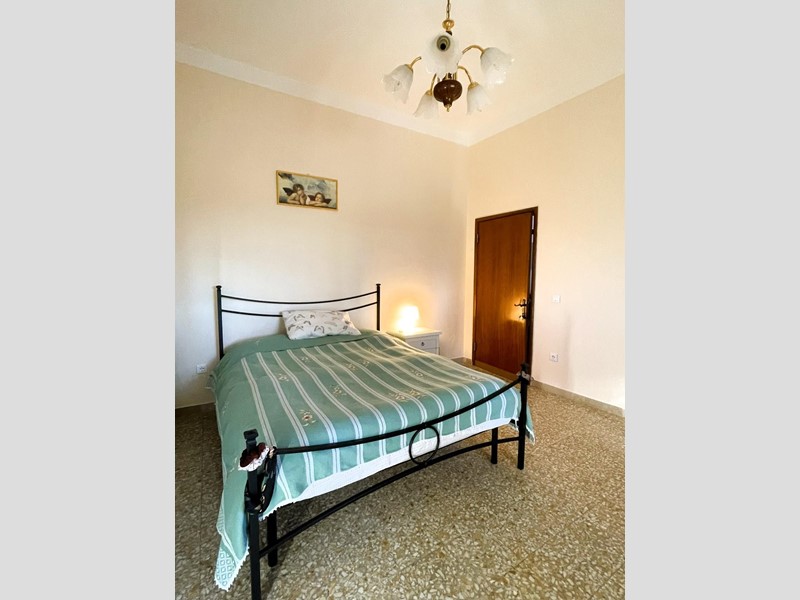 In una zona residenziale centrale, si trova una villetta di due piani, libera su quattro lati e circondata da un giardino con un ampio spazio lastricato di circa 250 mq, recintato e con accesso carrabile. L'abitazione, di circa 165 mq, al primo piano, accessibile tramite una scala esterna, è composta da un disimpegno, tre ampie stanze (una con accesso a una loggia), una cucina abitabile, un disimpegno notte, due camere matrimoniali, un ripostiglio e un bagno. Una scala interna conduce al piano terra di circa 110 mq, dove si trovano locali di sgombero, un piccolo bagno, una cantina e un loggiato di circa 65 mq. La proprietà è completata da un garage.