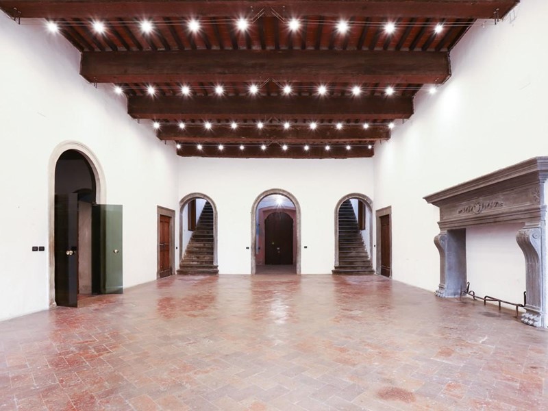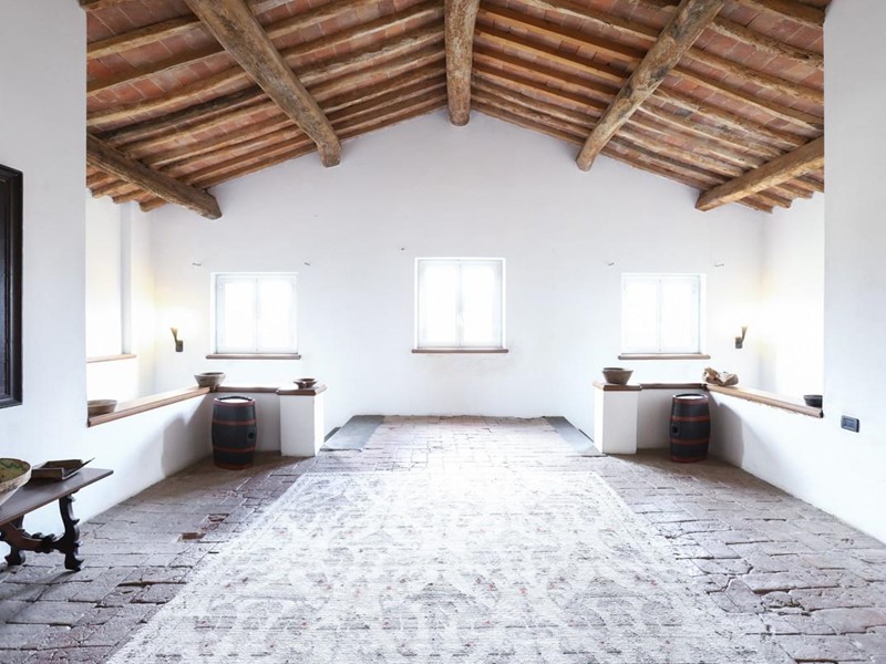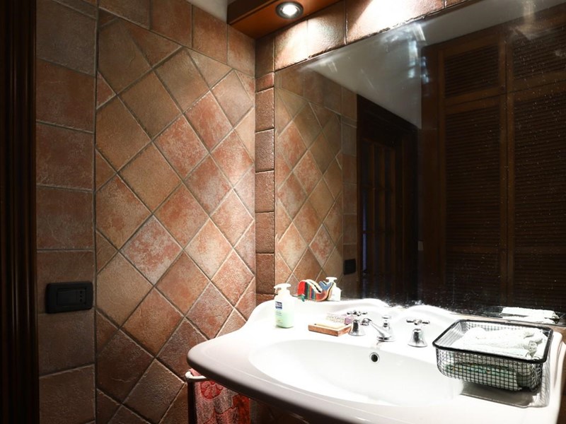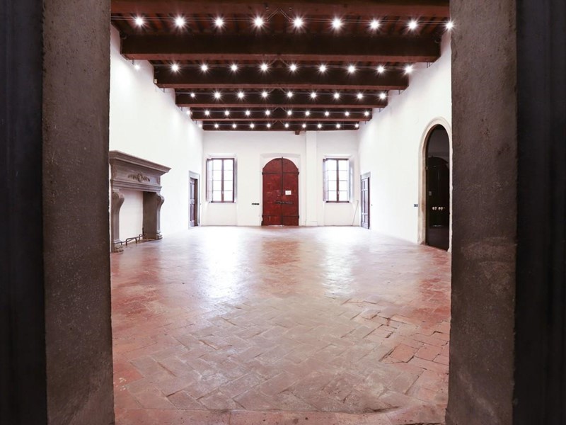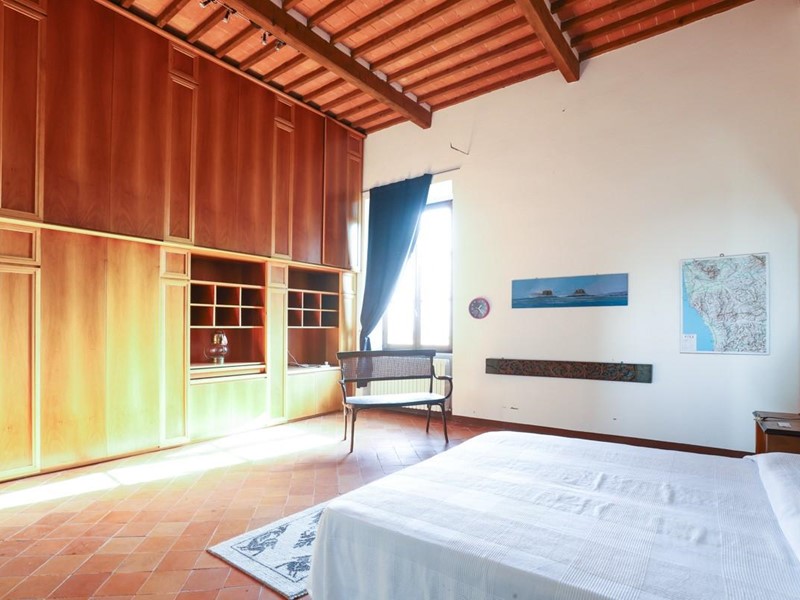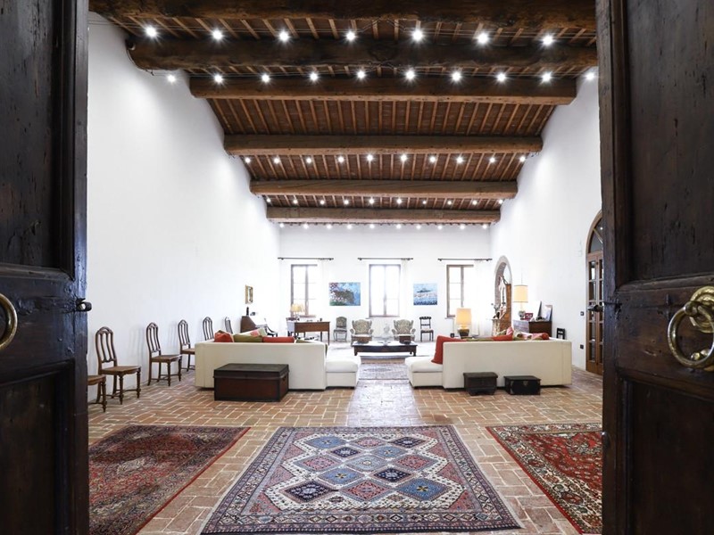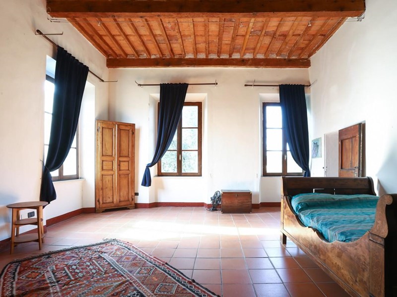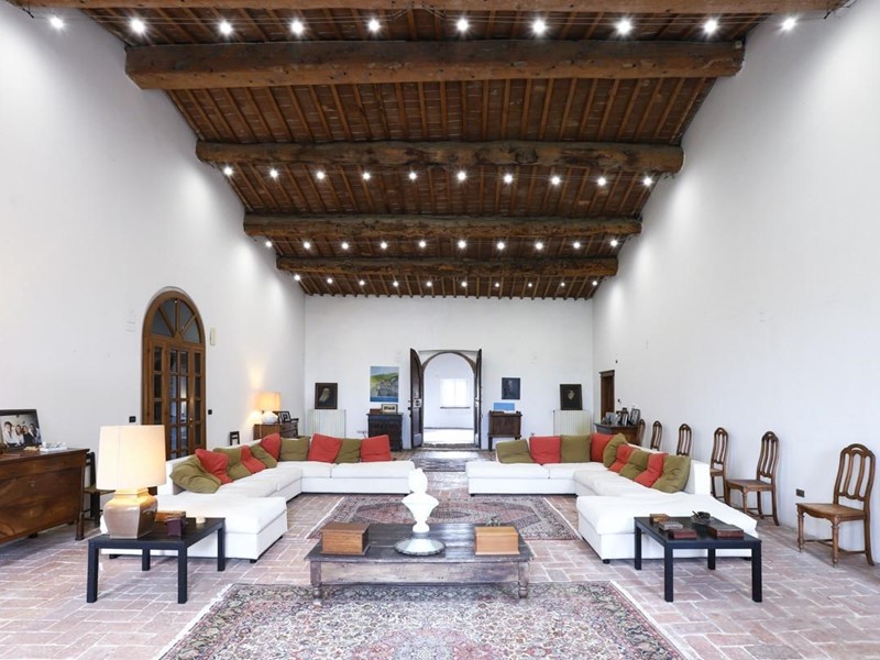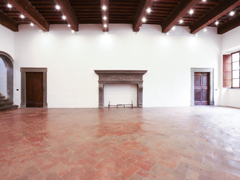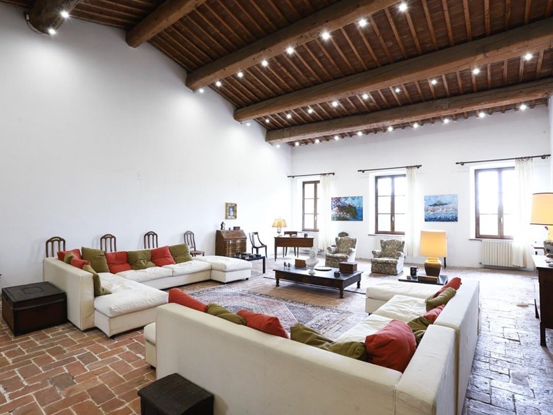 Il piano primo disimpegnato da un ingresso di ricongiungimento delle scale è composto da un grande salone delle medesime dimensioni di quello sopracitato al piano terra con soffitto a vista in travi e travicelli e cotto antico a pavimento, disimpegno, sala pranzo e una cucina abitabile con accesso ad una terrazza panoramica, sala lettura, studio e bagno completano la zona giorno, la zona notte è costituita da 4 camere matrimoniali di cui una con soppalco con accesso ad una delle due torretta e al secondo terrazzo panoramico, la camera padronale è con bagno interno e un secondo servizio per la zona notte ad utilizzo delle altre stanze.