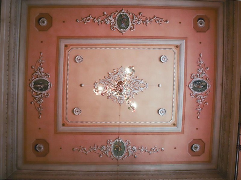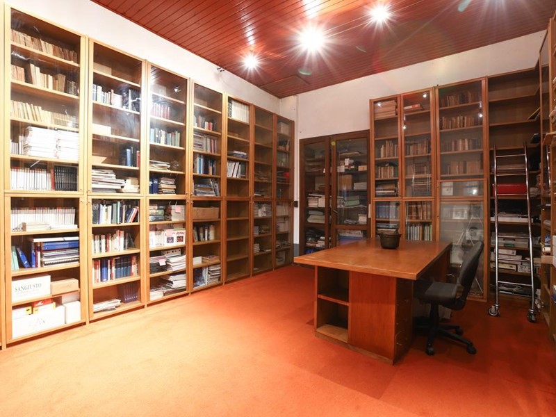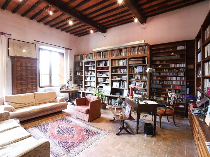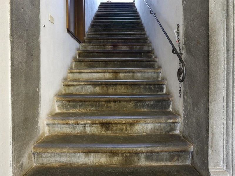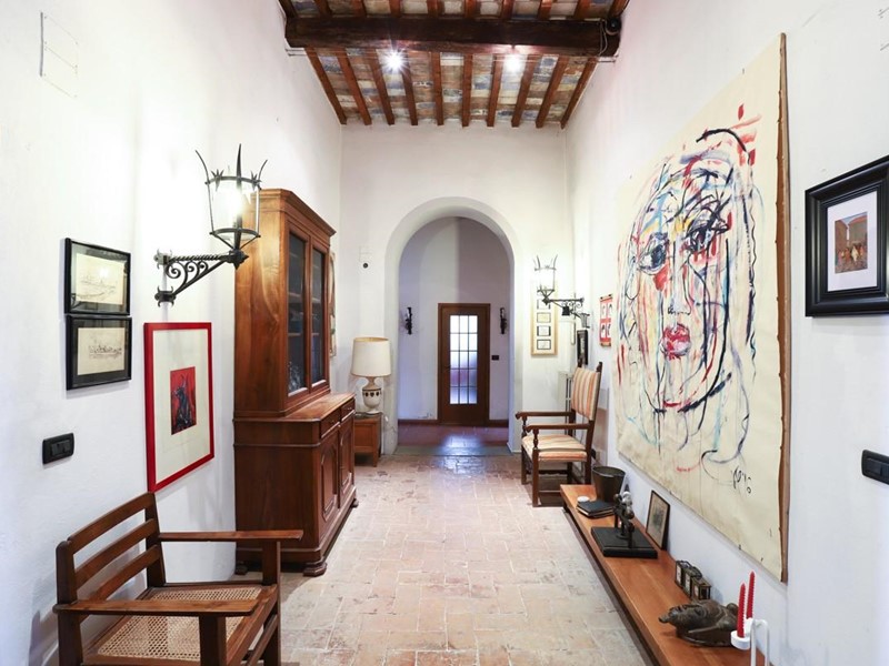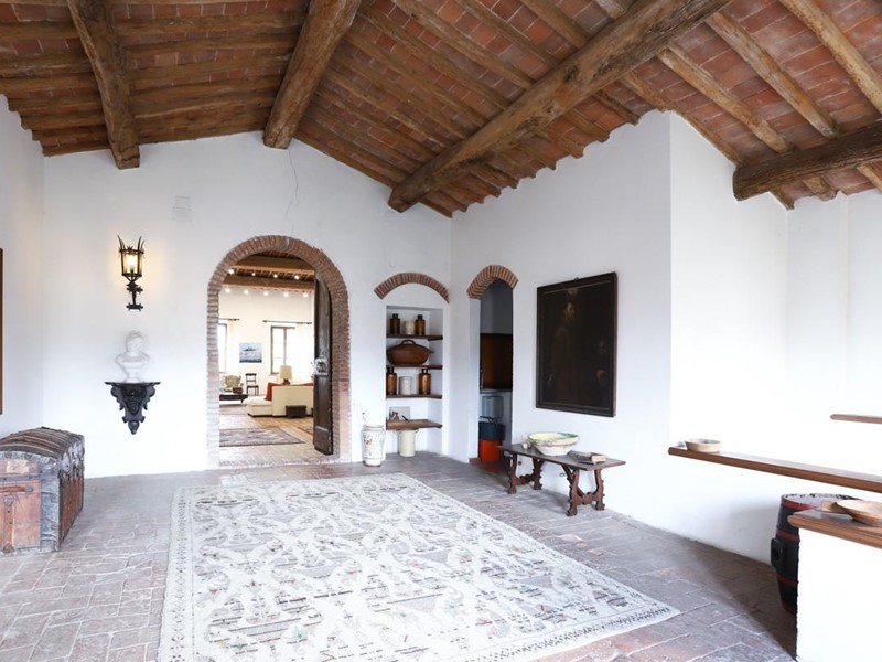 Al suo interno la villa si apre con grande salone della profondità del palazzo interrotto solo dalla doppia rampa di scale poste in prossimità della parte esterna con accesso secondario, un bellissimo camino originale arricchisce l’imponente ambiente, sul lato sinistro del salone si disimpegnano una grande cucina antica con focolare, una sala pranzo e uno studio con soffitti dipinti, è presente una libreria oltre ad una uscita secondaria di servizio, sul lato destro sono presenti 3 camere una zona armadi, e un bagno, infine nei due sottoscala, sono stati ricavati altri due servizi e una lavanderia.