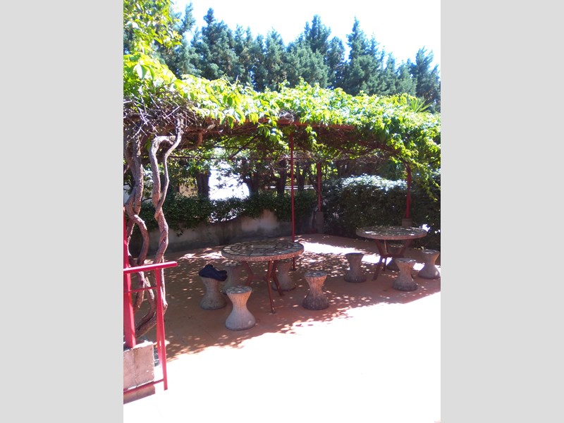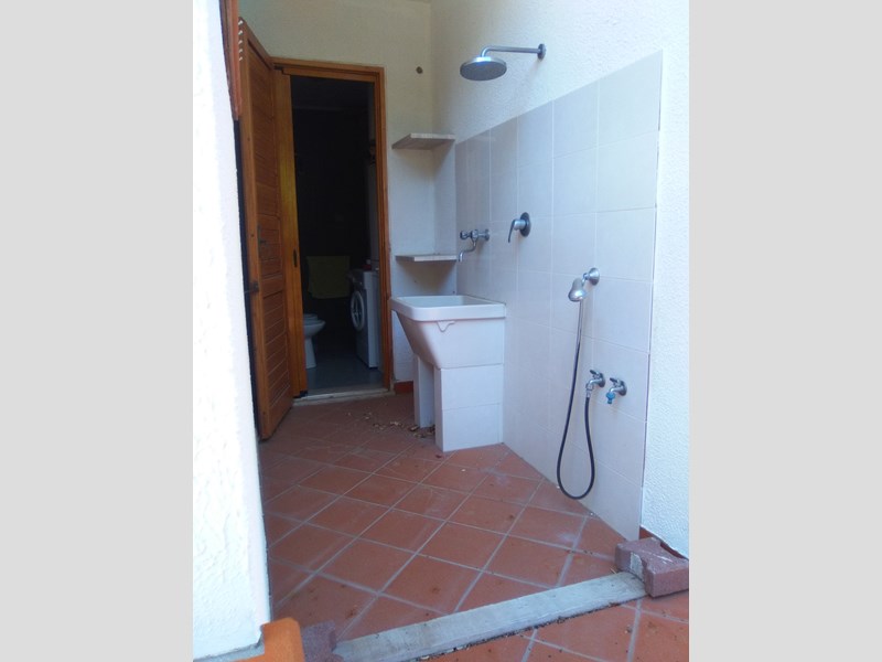 All'esterno vi è un terrazzo di circa 80 mq., una balconata con retrostante doccia e lavatoio.