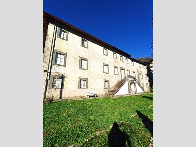 Sulle colline di Pescaglia in incantevole borgo antico dalle caratteristiche vie in pietra vendesi villa padronale del 1600 da ristrutturare di grandi dimensioni, circa mq. 380, disposta su 3 piani con ambienti grandi e ben distribuiti ed un giardino privato di circa mq. 600, la facciata della villa è impreziosita da una raffinata doppia scala caratteristica dell'epoca che confluisce nel terrazzino d'ingresso del 1° piano. Il piano terra ci riceve con un grandissimo ingresso di oltre mq. 30 dal quale sulla sinistra si accede alla zona giorno con 2 ampi vani comunicanti e sulla destra alla cucina abitabile con doppio vano dispensa; al 1° piano altro ampissimo vano centrale, biblioteca, 3 camere matrimoniali e bagno; il 2° piano presenta un salone, altre 4 camere matrimoniali, altro bagno. A corredo annesso su 2 piani di circa complessivi mq. 30 con grande terrazza al 1° piano, forno esterno ed altri 2 annessi uso ripostiglio.