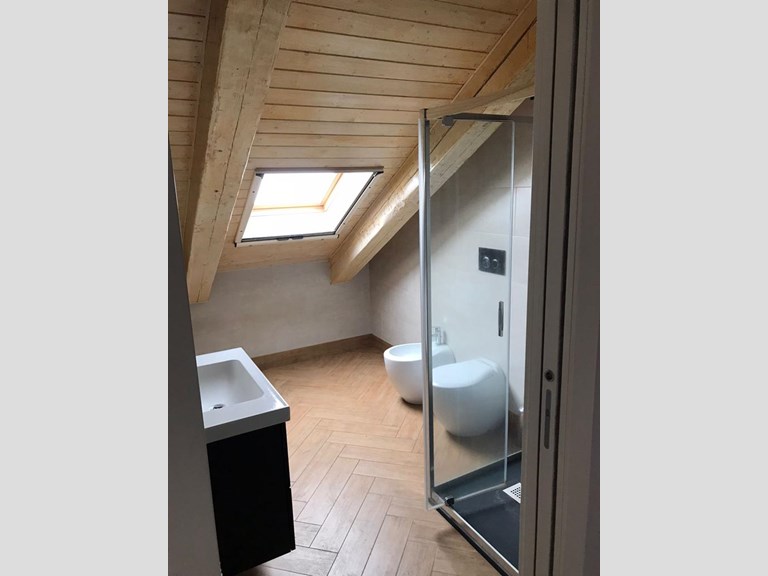 L’immobile è di recente costruzione e presenta la zona giorno con sala, cucina e bagno dotato di vasca e la zona notte al piano superiore mansardata con due camere da letto di cui una molto ampia e già attrezzata per cabina armadio e il secondo bagno con doccia al piano mansardato.