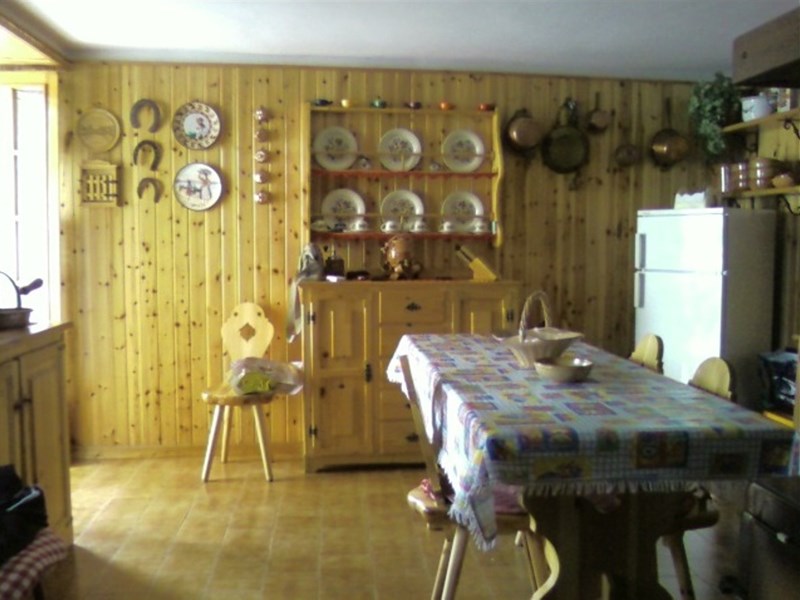 PT: Cucina abitabile, camera con terrazza e barbecue, saletta con camino, bagno.