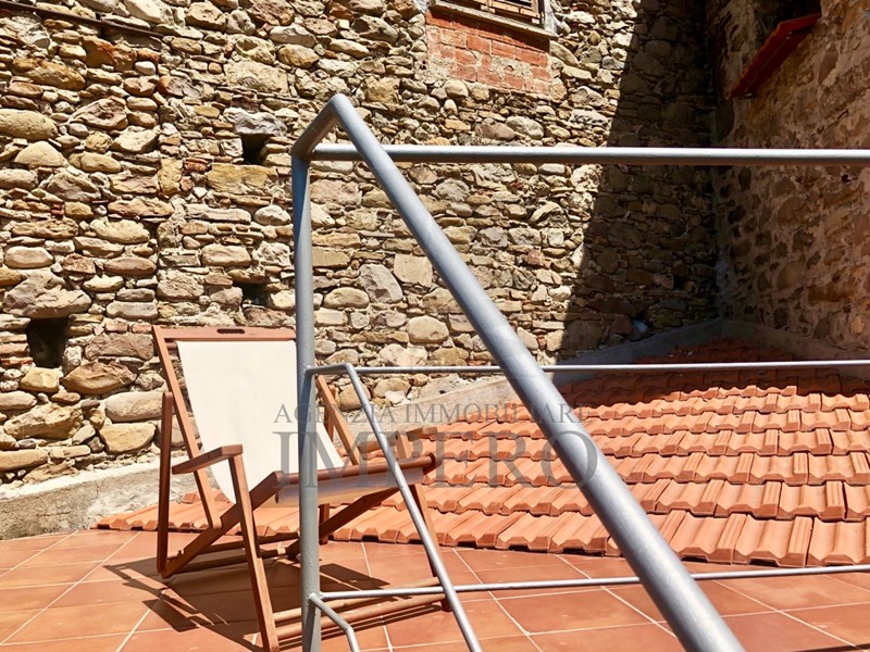 Rif. 21993- Dolceacqua. Vendesi bilocale di circa 40 mq nel centro storico del paese. Dai terrazzi si ha una magnifica vista sul paese e sulla vallata. L’appartamento si trova al terzo e quarto piano con accesso dal terrazzo principale di 24 mq, dotato di una cucina estiva. Un bel vano con soffitto a volta funge da soggiorno e zona pranzo con cucina a vista. Al piano superiore si trovano il bagno e la camera da letto, da cui si accede a un piccolo terrazzo con accesso al terrazzo sul tetto sovrastante.