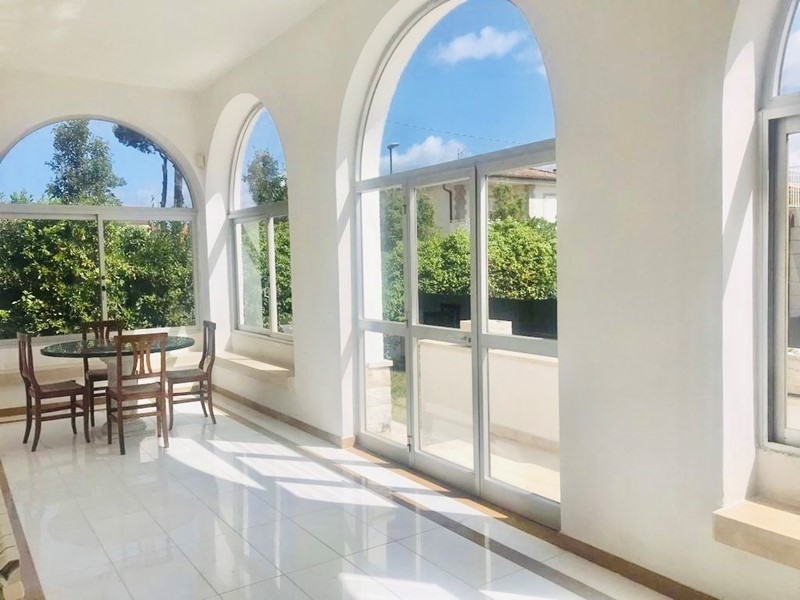LA VILLA si presenta circondata da ampio giardino disposto su quattro lati del' immobile, il quale si presenta con imponenza caratterizzato dalle ampie vetrate con arcate e terrazza vivibile di mq.100 che la rendono speciale ed unica.