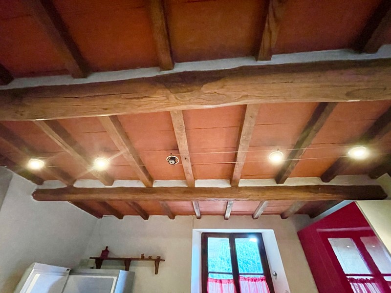 La casa si presenta subito abitabile e dotata di riscaldamento con stufe a pellet, i soffitti sulla zona giorno sono in caratteristico travicello, sabbiato, mentre i pavimenti in cotto originali ed in marmo decorato lo rendono unico nel genere.