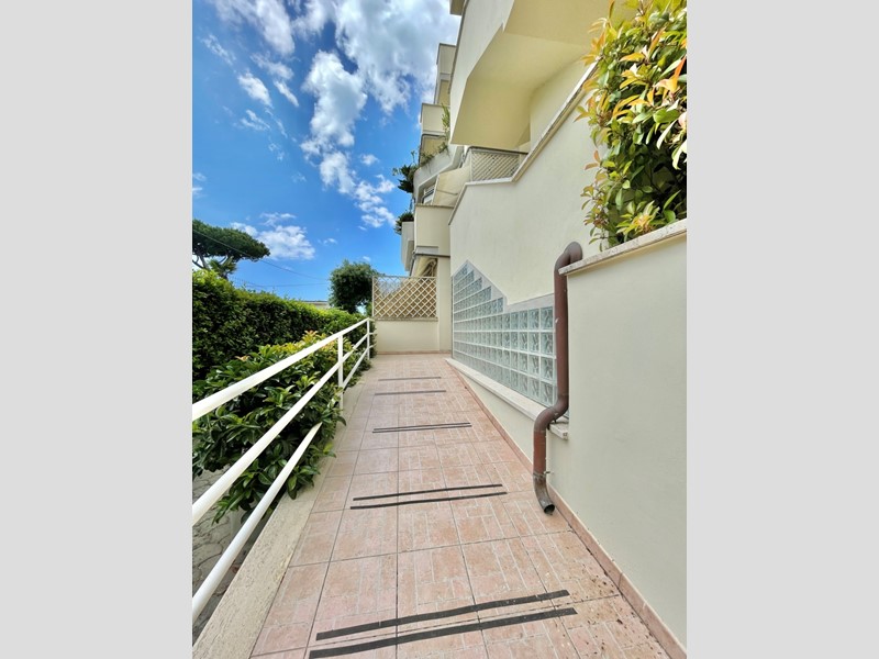 All'appartamento si accede a mezzo elegante viale di ingresso, dove al piano rialzato troviamo l'ingresso dell'appartamento che ci accoglie con un luminoso soggiorno , comodo angolo cottura, ampia terrazza vivibile per cene all'aperto, disimpegno con comodo armadio a muro, camera matrimoniale, e servizio doccia.