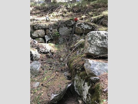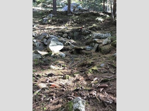 Nella radura boschiva, il primo rudere consente la costruzione di una baita d'alpe di circa 45/50 mq., il secondo di un deposito accessorio di soli 20 mq..