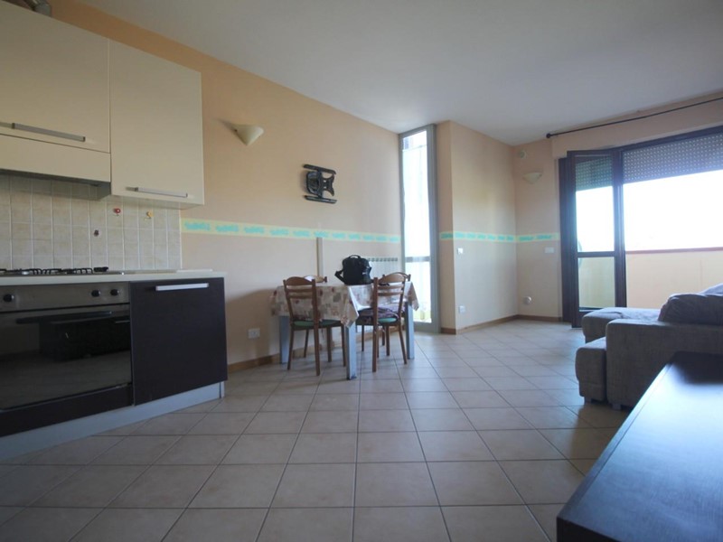 Appartamento di recente costruzione posto al primo piano di mq 50 e composto da ingresso, ampio soggiorno con angolo cottura e accesso a terrazzo panoramico, bagno e camera matrimoniale. Garage. L'appartamento è molto luminoso e ubicato vicino ai maggiori servizi. Buone condizioni. Posto auto condominiale. Attualmente locata.