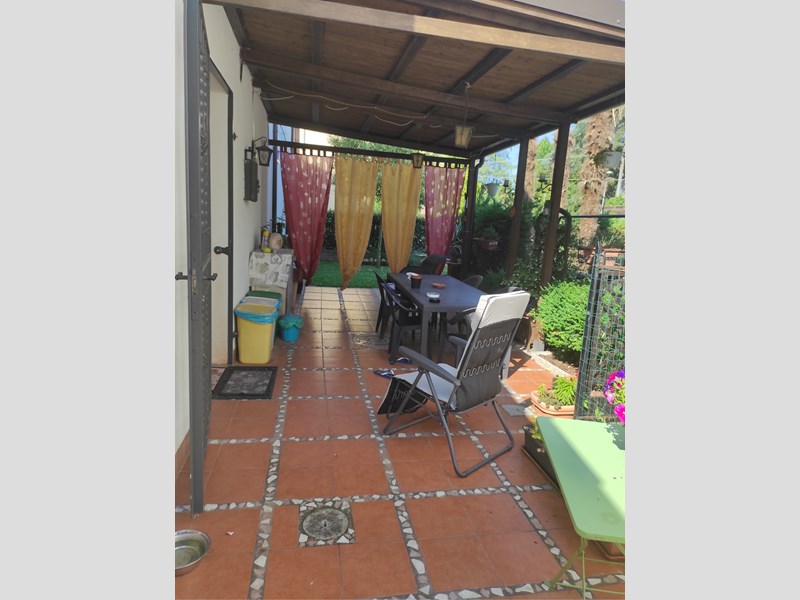 Ingresso su cucina abitabile molto grande,sala sgabuzzino e bagno al piano primo camera matrimoniale, cameretta, bagno, studio e sotto tetto ad uso sgabuzzino piastrellato e finestrato giardino privato di 130MQ.la casa possiede termo cappotto zanzariere scuri con frangisole canna fumaria per camino o stufa a pellet e aria condizionata