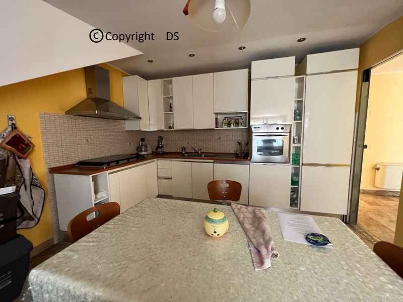 Ampio ingresso, grande salone di circa 35 mq , tre camere da letto, cucina soggiornabile , ripostiglio,due bagni di cui uno con antibagno, due balconi e un terrazzino abitabile di 10,5 mq.