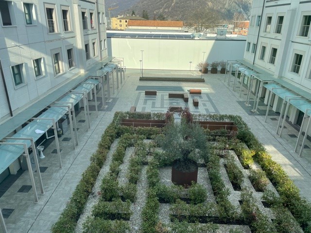 Terrazzino con doppio affaccio: piazza privata ed area di parcheggio