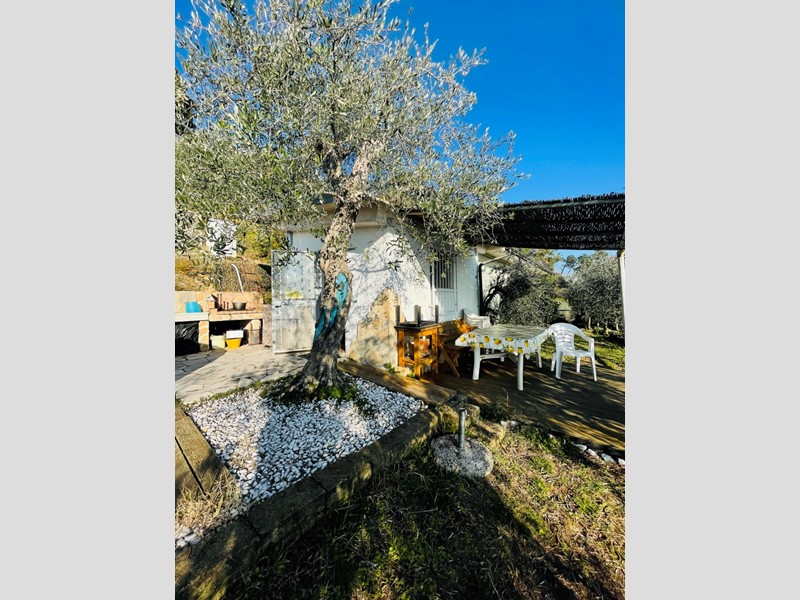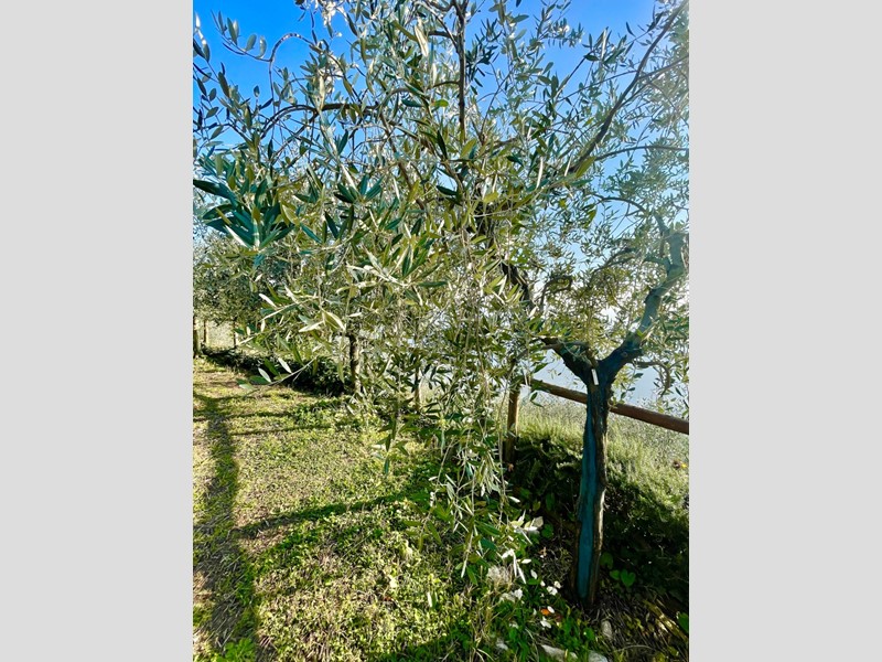 Si presenta circondato da ampio terreno di Mt.5000 sapientemente piantumato, con 240 piante di olivo.