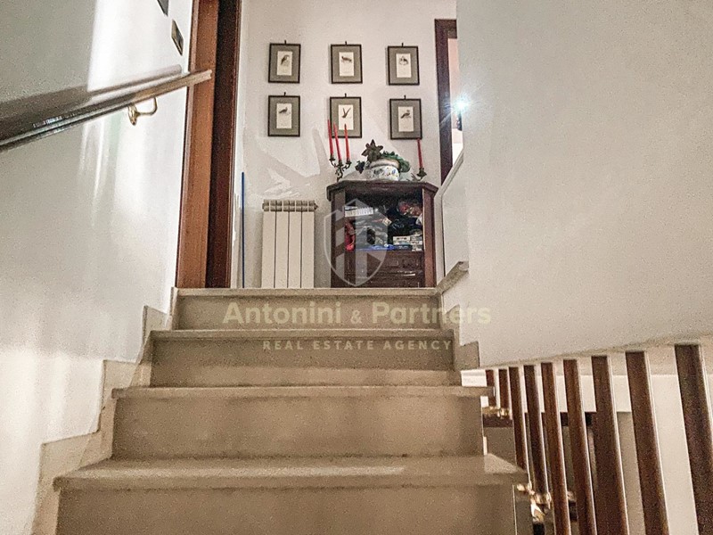 - Nel piano primo si trovano invece la cucina principale, il soggiorno con accesso al grande terrazzo (40 mq), un bagno, un disimpegno e lo studio.
