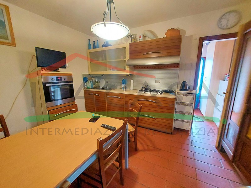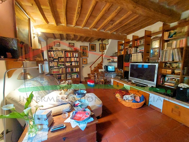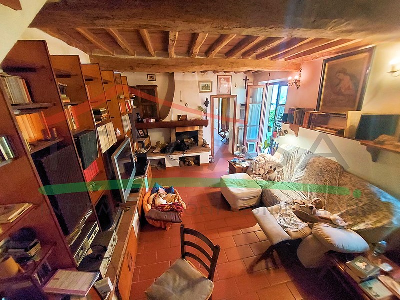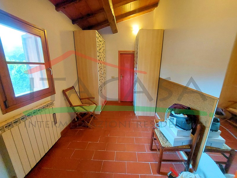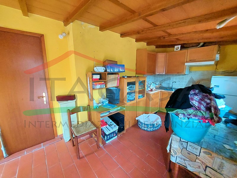 Piano terra Soggiorno con travi a vista, cucina, disimpegno, stanza armadi camera, e bagno (nuovo).