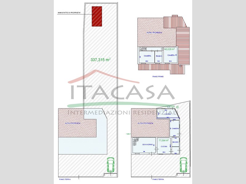 Piano primo Vano scale, disimpegno, due camere matrimoniali, e bagno.