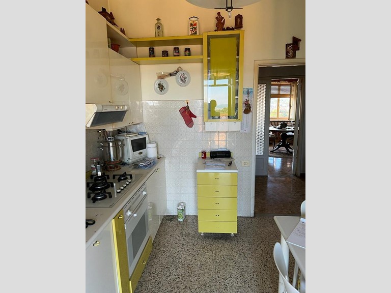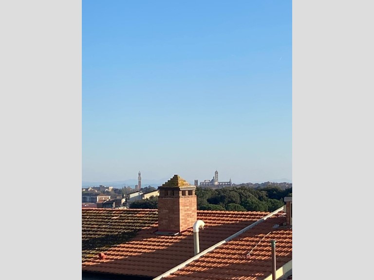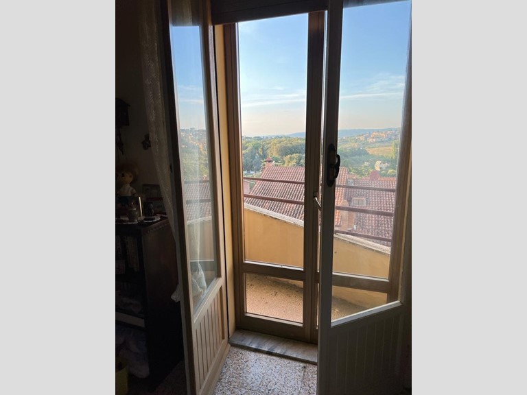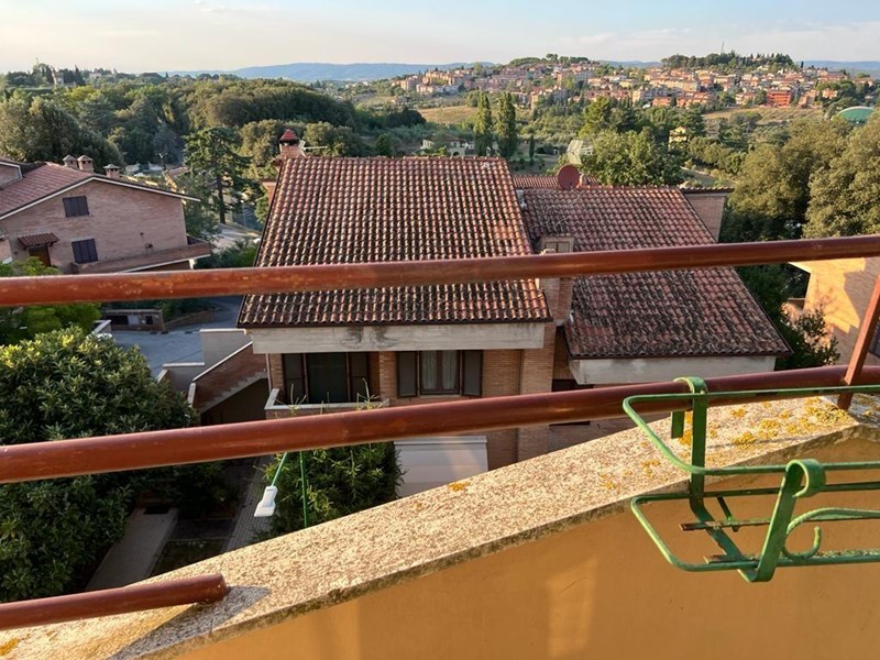 Siena - Marciano - in posizione tranquilla e a due passi dal centro , vendesi appartamento molto luminoso con vista panoramica , posto al quarto piano con ascensore in palazzina di piani totali cinque e con ampio piazzale privato . L'immobile attualmente è così composto : ampio ingresso da cui si accede ad una cucina abitabile con balconcino adibito a zona lavanderia, ampia sala con terrazza, camera matrimoniale e camera doppia con terrazzino, ripostiglio. L'appartamento al momento necessita di una ristrutturazione . Impianto a gas singolo. Completa la proprietà un ampio garage e posto auto in assegnazione nel piazzale condominiale.
