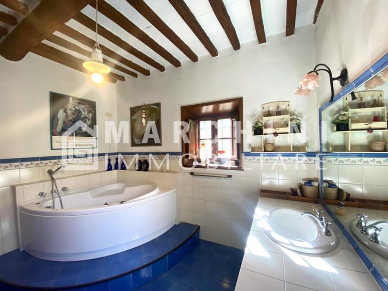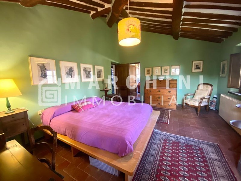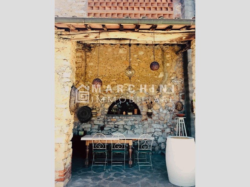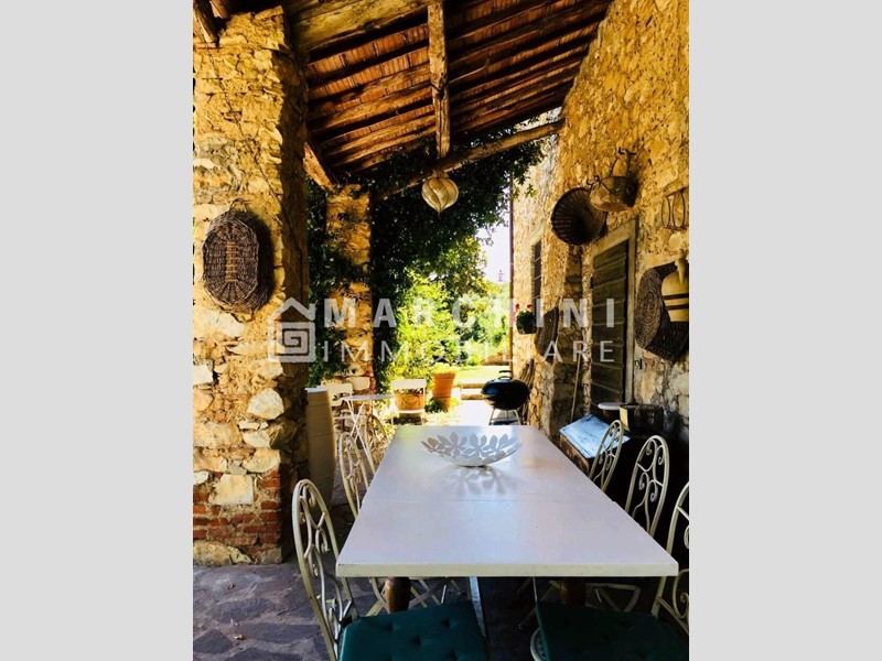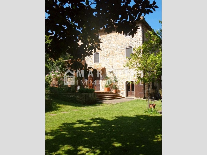 La proprietà, di circa 250 mq, si sviluppa su tre livelli: al piano terra porticato, due ampi saloni dotati entrambi di caminetto funzionante, di cui uno con zona pranzo, cucina abitabile in stile rustico in muratura, due vani cantina con zona lavanderia e ripostiglio; al piano primo due camere matrimoniali, un bagno grande con jacuzzi, un bagno con doccia e un disimpegno con due cabine armadio dal quale si accede al secondo e ultimo piano, dove troviamo tre camere matrimoniali, di cui una con bagno en-suite, una con salottino e caminetto e l'altra con soppalco. A corredo elegante e rigoglioso giardino recintato con piscina e pergolato. Il terreno complessivo della proprietà si estende per circa 4 ettari. Pavimenti in cotto, vetri doppi, zanzariere, cancella elettrico di accesso.Per garantire la privacy, l'indirizzo può non rispecchiare esattamente l'ubicazione dell'immobile ed è utile al solo fine di fornire un riferimento generico per la sua localizzazione ed un ausilio alla consultazione. Gli appuntamenti si prendono esclusivamente per telefono.