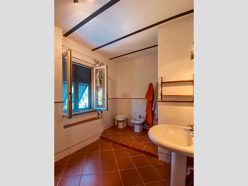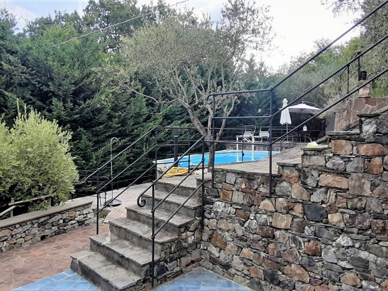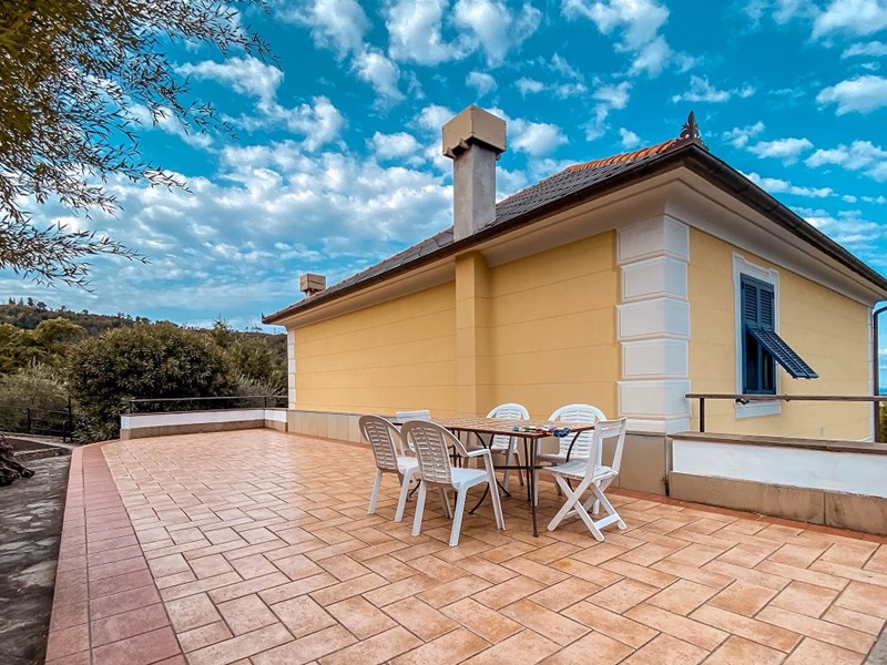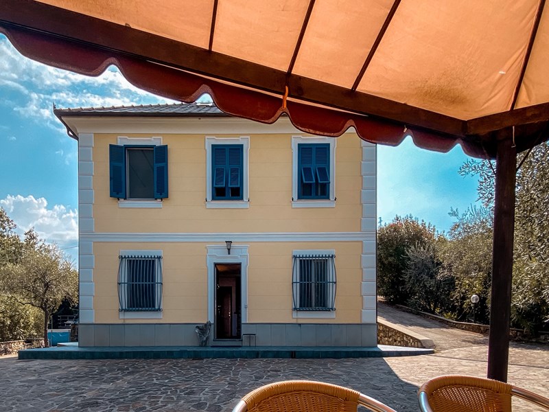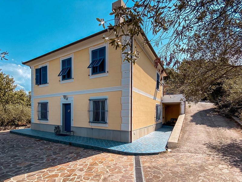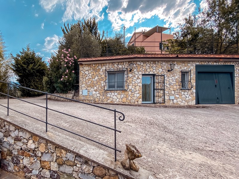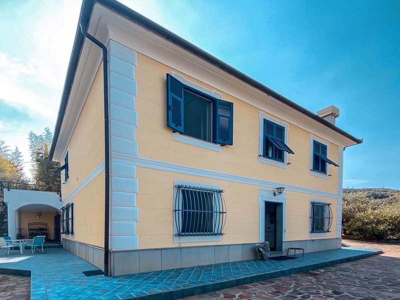Splendida Villa uni-familiare totalmente ristrutturata e ottimamente rifinita con uso di materiali di pregio, in posizione panoramica con vista mare, totalmente immersa nel verde e ulivi, circondata da porzione di bosco.