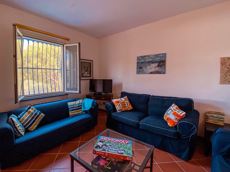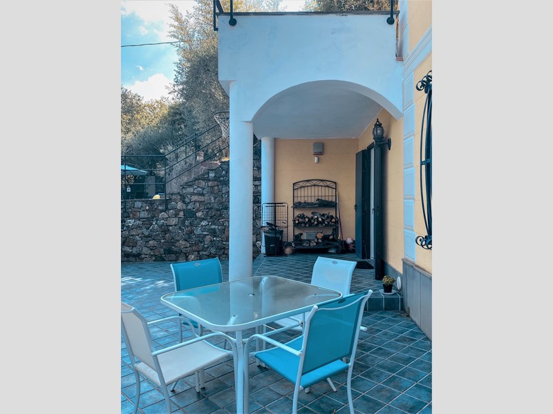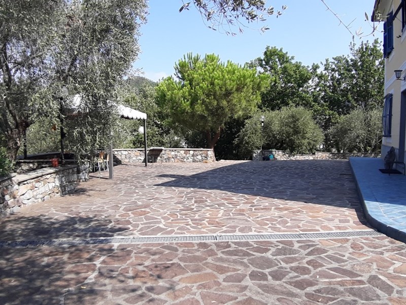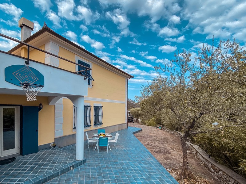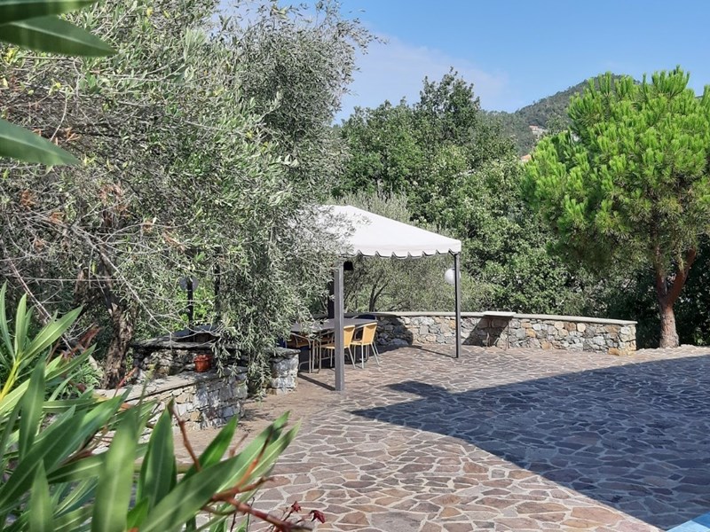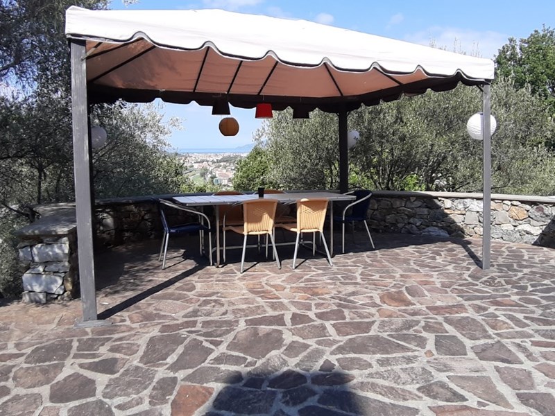 La Villa è fronteggiata da ampia corte, con gazebo esterno affacciato sugli ulivi e con vista mare.