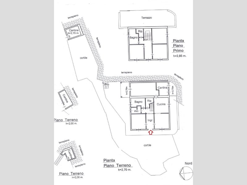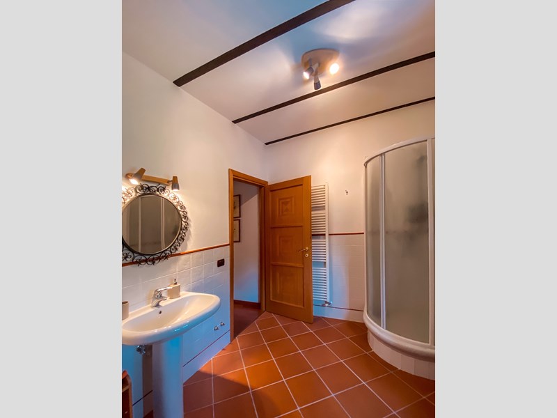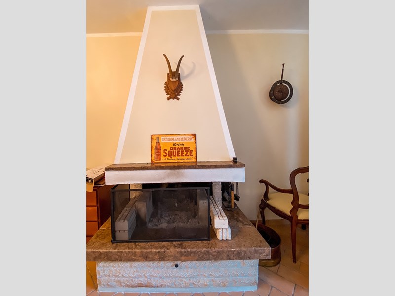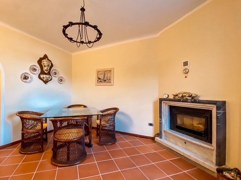Così composta: Piano T. (zona giorno): ingresso arredabile, salotto, soggiorno con caminetto a legna a vista su ampia cucina, salone (e/o tavernetta) con caminetto e accesso all'esterno su piccolo patio, bagno padronale con vasca + bagno di servizio con doccia; piano 1° (zona notte): disimpegno arredabile, camera matrimoniale, due camere doppie, oltre ad ampio bagno con doccia, scala in legno per accedere alla mansarda di ampia metratura, con ripostigli.