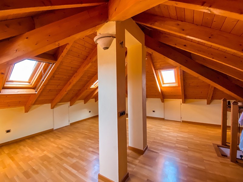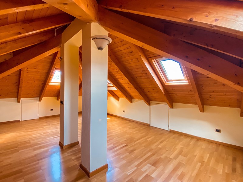 Disposta su, due piani oltre ad ampio sottotetto abitabile (con abbaini) e soffitti in legno pregiato a vista, accessibile dall'interno della stessa.