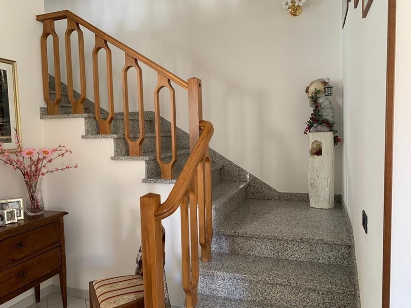 Piano terra ampia cucina ,pranzo e soggiorno con balcone , bagno , piano primo 3 camere due bagni, uno in camera, balcone.
