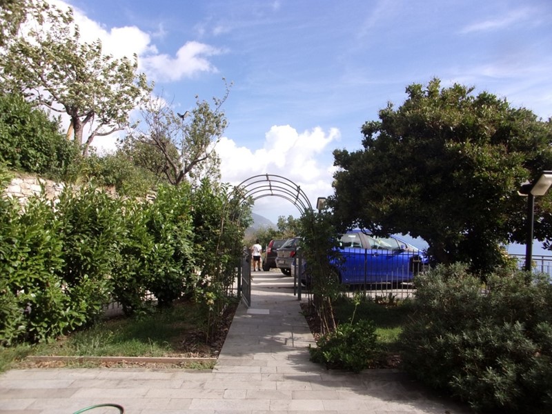 (RIF. 516) Framura, Foce del Prato. Vendesi appartamento al piano terra, di mq 110, composto da grande soggiorno, cucina, 2 camere, 2 bagni. Giardino, terrazzo, terreno di mq 1'000 circa. Cantina di mq 15. 4 posti auto. Vista mare.