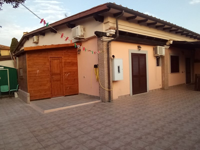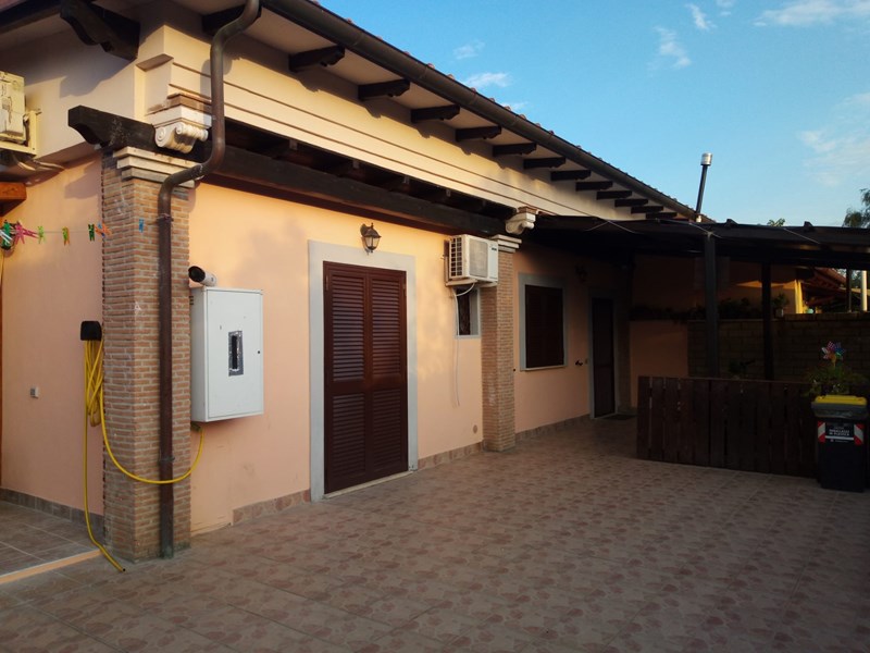 Cerveteri, zona Zambra, privato vende villino su unico livello + cameretta sotto tetto e soppalco, in residence di 7 unità abitative senza condominio, con grande spazio esterno in comune recintato con doppio accesso pedonale e carrabile e da dove si accede poi al cancello del giardino privato di proprietà di 232 mq pavimentato termo autonomo, camino, condizionatori, soffitti alti con travi in legno, salone con cucina all'americana in muratura, camera, cameretta, bagno con vasca, altro bagno con doccia, altra cameretta al piano superiore, soppalco in legno abitabile, euro 199000 Lorenzo 3755447386