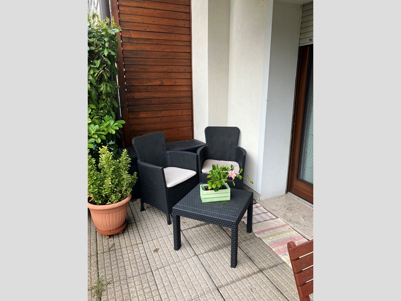Bicamere in ottime condizioni in piccolo condominio di soli 8 appratamenti situato in zona residenziale sotto le colline di Manzano. Nell'appartamento rimangono la cucina con piano in granito completa di elettrodomestici e i mobili del bagno. E' presente anche un piccolo gardino privato con patio esterno piastrellato ideale per cene o relax completo di tenda da sole motorizzata, un garage e un posto auto esterno di proprietà.