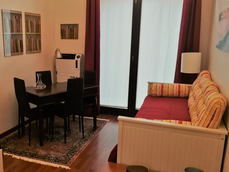 Il bilocale è interamente pavimentato in parquet laminato ed ha una superficie totale di 36 mq. con altezza soffitti di circa 4 metri.