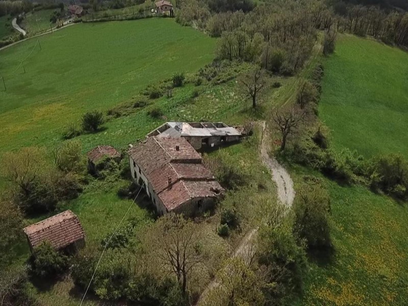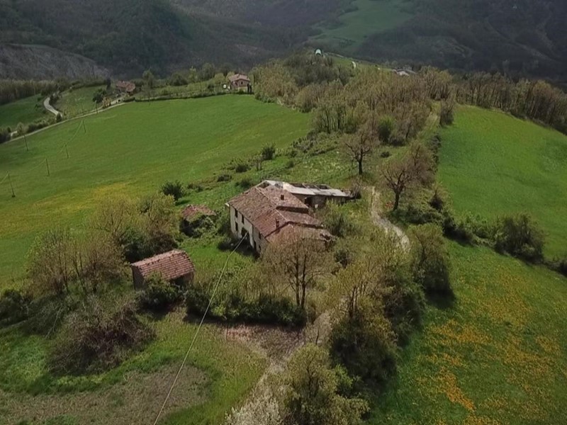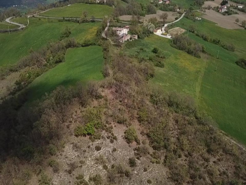 Rosola di Zocca: in posizione dominante sulla valle del Panaro vista Cimone, fondo rustico di circa 6 ettari con fabbricati (due abitazioni, due stalla_fienile) da recuperarsi e collabenti. pozzo di falda.