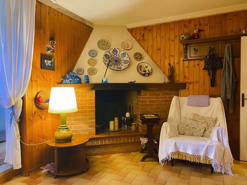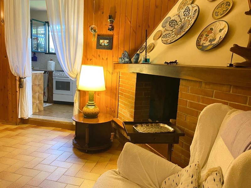• Piano terreno: Ingresso, soggiorno con caminetto, cucinotto, e accesso diretto al giardino vivibile.