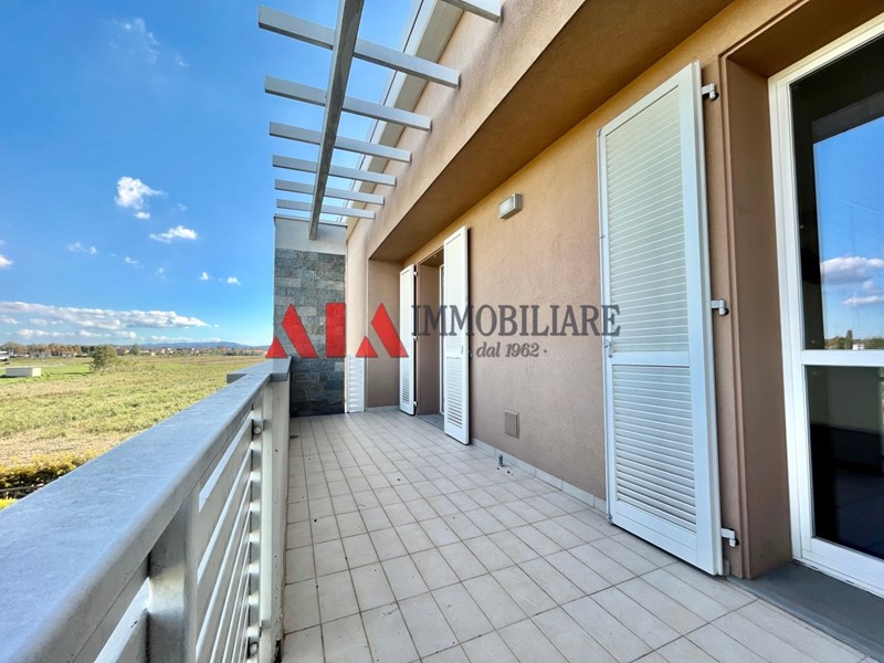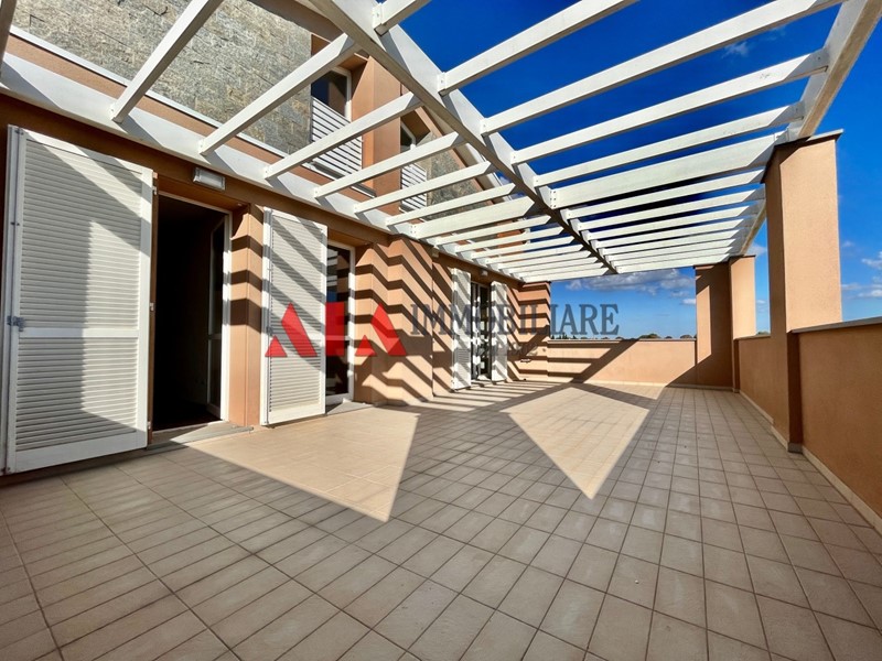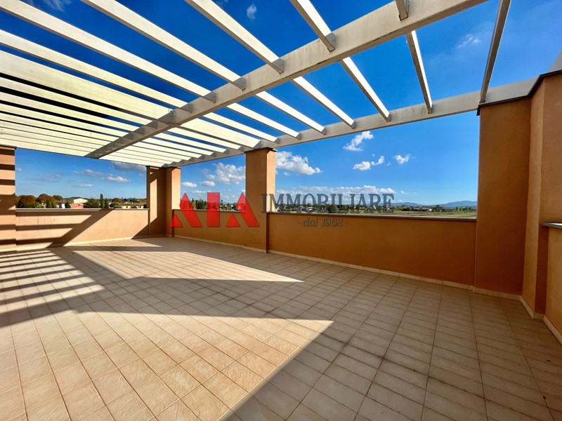 PONTEDERA frazione LA BORRA: L'Agenzia Immobiliare AIA propone in vendita esclusivo attico di nuova costruzione con bellissima terrazza abitabile. L'abitazione è posta al secondo ed ultimo piano di bel fabbricato di recentissima edificazione e si compone di ingresso in grande zona living open-space ben distribuita tra zona soggiorno con accesso ad un terrazzo coperto e zona cucina-pranzo abitabile dalla quale si accede alla meravigliosa terrazza di quasi 50mq; nella zona giorno sono presenti anche un bagno con doccia ed un ripostiglio con attacchi per eventuale zona lavanderia. Il disimpegno notte si compone di ampia camera da letto matrimoniale con accesso ad ulteriore terrazzo coperto, due camere singole e bagno con vasca. Dal soggiorno, tramite scala di design, troviamo l'accesso al grande sottotetto ben sfruttabile, con possibilità di suddividerlo in più stanze e già dotato di predisposizione per realizzare un bagno. Completano la proposta immobiliare un garage e due posti auto esclusivi. Di alto livello le finiture interne, cappotto termico, impianto di riscaldamento centralizzato a gestione autonoma, impianto solare termico, predisposizione allarme e climatizzazione. Soluzione ideale per chi è alla ricerca di un attico moderno, confortevole e ad alto risparmio energetico, in una zona tranquilla a pochi minuti dal centro di Pontedera! Classe Energ. "A" €uro 350.000,00 Rif. AP126