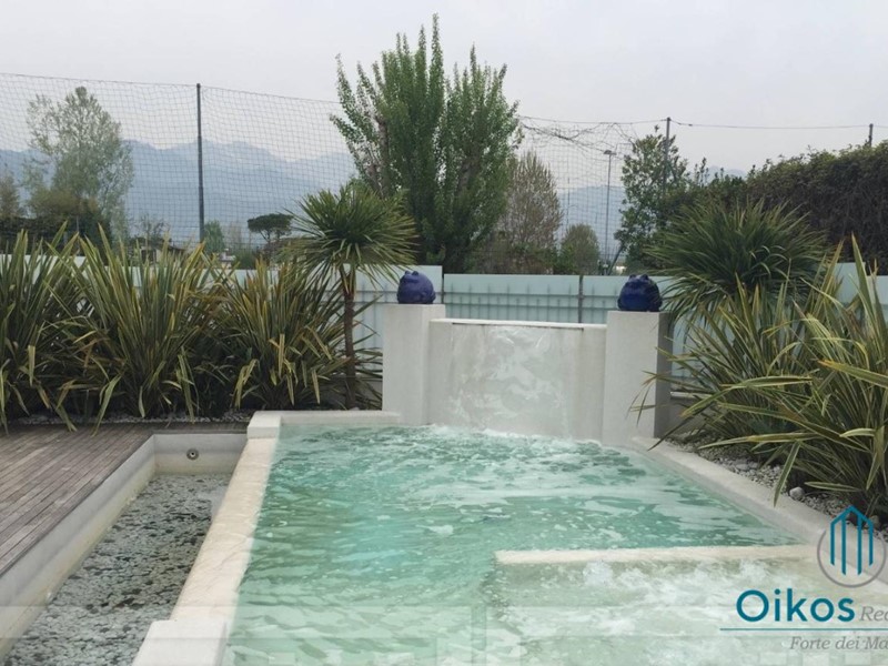 FORTE DEI MARMI (Vittoria Apuana) - Villa monofamiliare di recente costruzione di mq.250, con giardino esclusivo e vasca idromassaggio esterna, disposta su due piani fuori terra, oltre al piano seminterrato e nel suo interno composta da: piano terra: ingresso, soggiorno-pranzo, cucina abitabile, bagno con doccia e veranda per pranzare all'aperto; Piano primo: camera da letto matrimoniale con proprio bagno privato e stanza armadi con bella terrazza di mq.30, seconda camera da letto matrimoniale con proprio bagno privato; Piano seminterrato: taverna con zona fitness, bagno turco, due camere da letto matrimoniali ed un bagno. Posti auto coperti nella proprietà.