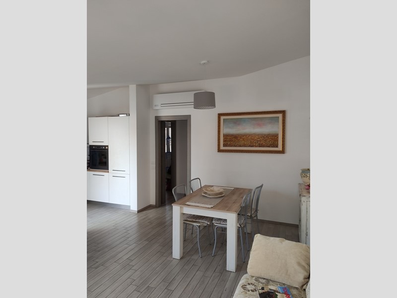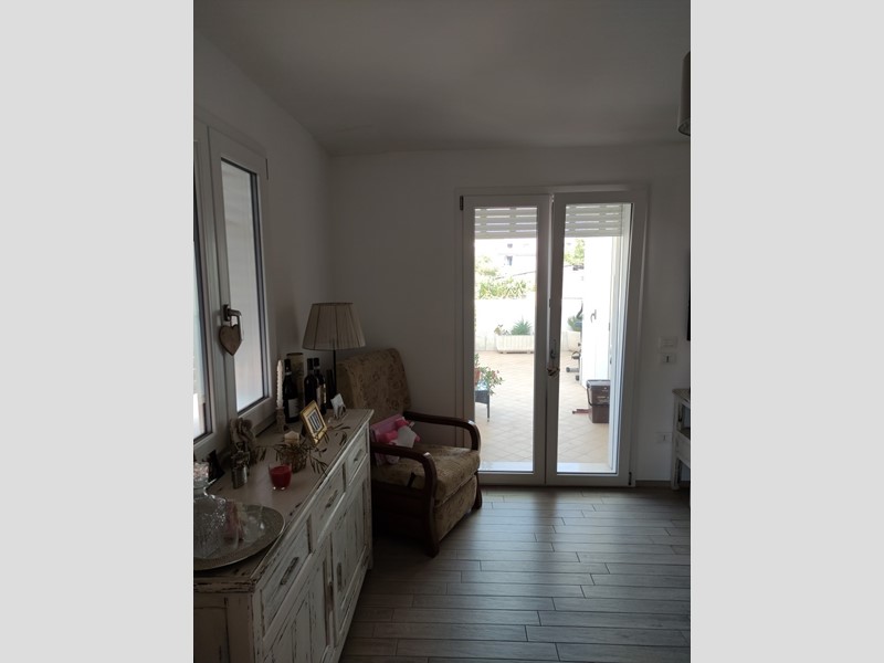 Abitazione indipendente nel signorile Residence and quot;ANTHEA and quot; di recentissima realizzazione.\n\nPosta al Piano Primo del fabbricato, l'abitazione presenta un ingresso nel soggiorno-pranzo completo di cucina abitabile, ampio terrazzo esterno con vista, disimpegno di collegamento a bagno e due camere da letto di cui una padronale con balcone e servizio igienico esclusivo.\n\nComodo ascensore di collegamento tra l'abitazione e la cantina/ripostiglio posta al Piano Seminterrato.\n\nPossibilità di vendita di vasta taverna al Piano Seminterrato completa di comfort e servizi.\n\nN. 2 posti macchina esclusivi assegnati.\n\nVicinanza immediata al centro cittadino con conseguente estrema facilità di arrivo ai vari servizi urbani (banche, poste, scuole primarie e secondarie, supermercati ecc.) senza utilizzo di veicoli. - Maggiori Dettagli: Cucina Abitabile, Videocitofono