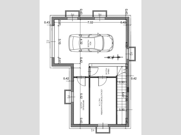 Tramite scala di collegamento interna si accede al piano seminterrato di circa 80 mq composto da box doppio e 2 locali lavanderia/ripostiglio.