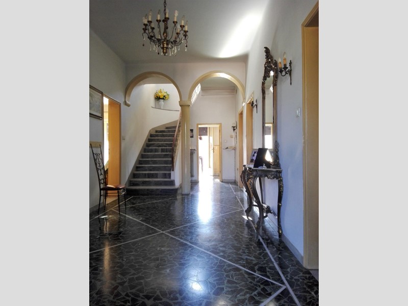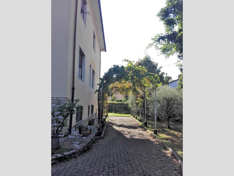 In primissima periferia elegante villa singola anni '50 di circa mq. 400 disposta su 2 piani piu' seminterrato di circa mq. 200. Si compone di: al piano terra rialzato grande ingresso, studio, salottino, sala da pranzo con caminetto, salone, cucina, veranda affacciata sul retro, bagno; al 1° piano 5 camere, bagno, 2 terrazzi; al piano seminterrato garage, cantina, forno e ambienti di servizio. Corredata da ampia terrazza/portico d'ingresso, pergolato e mq. 1.000 di giardino su 4 lati.