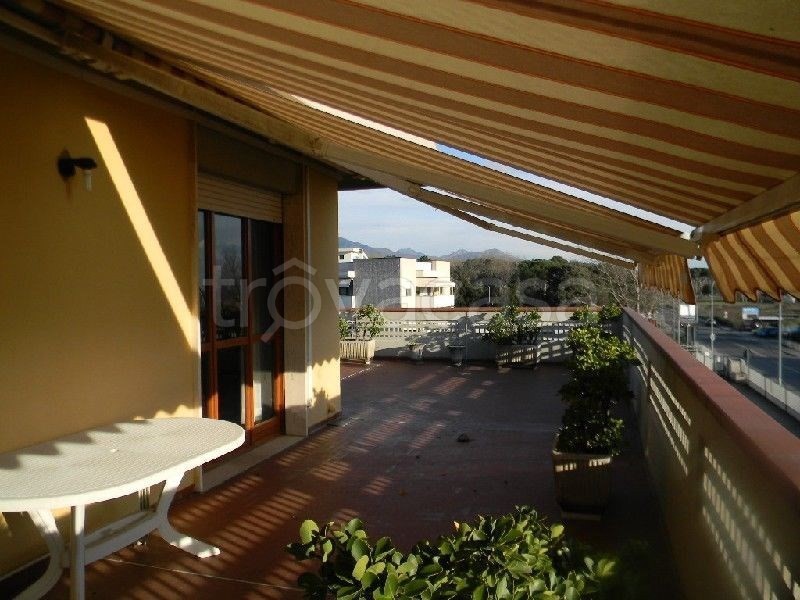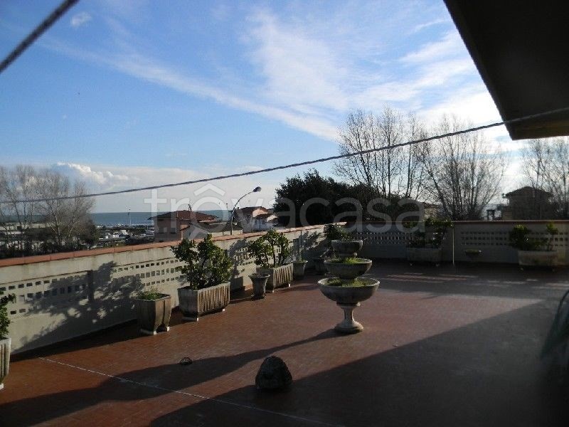 Attico in perfette condizioni,unico nel suo genere, fronte mare e vista sulle Apuane, con terrazza di mq.150 . Al secondo e ultimo piano in edificio di recente costruzione, a Marina di Carrara confinante con Marina di Massa, composto da salone doppio, Camera matrimoniale di ampie dimensioni, cucina abitabile, bagno, ripostiglio, possibilità di seconda camera, pavimenti in onice rosa, buone rifiniture, termoautonomo, posto auto.