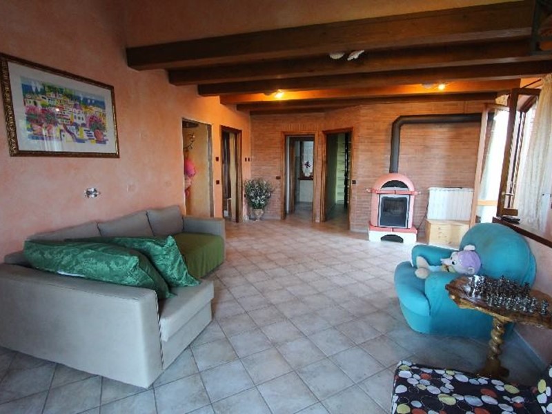 Al piano terra : ampio portico, ingresso in grande zona giorno con spazio divani, grande cucina e zona pranzo, camera matrimoniale, bagno, lavanderia, ripostiglio, disimpegno, cantina.