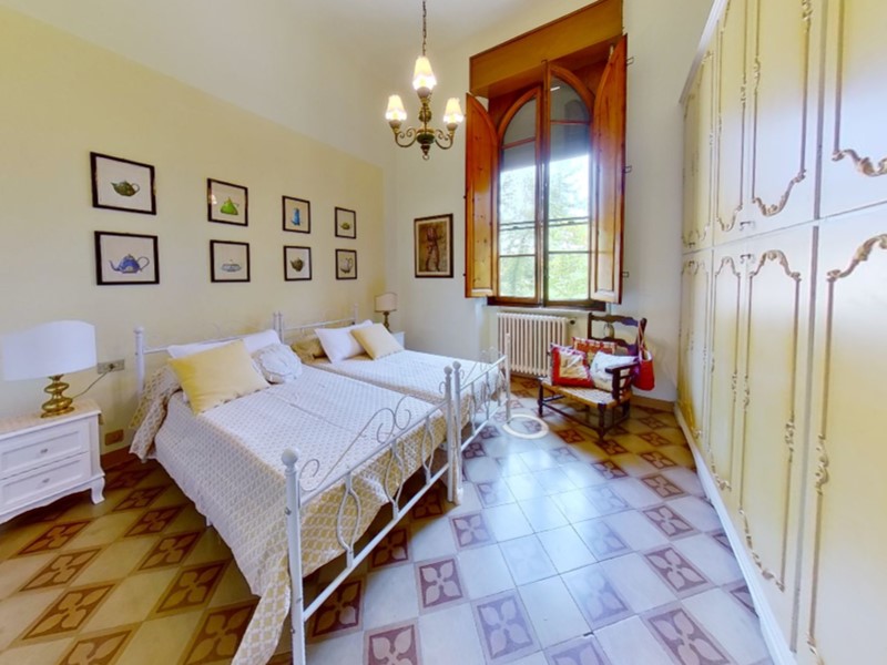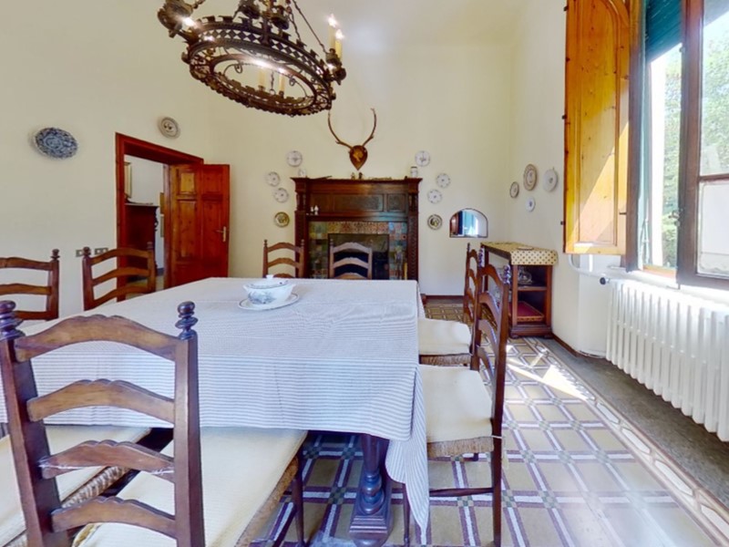 Nelle prime campagne splendida villa liberty immersa nel verde con eleganti finestre a bifore e imponente torretta corredata di dependance. La villa internamente si compone di: a piano terra tipica veranda chiusa finestrata dell'epoca, ingresso, ampio soggiorno, salottino da gioco, sala da pranzo con caminetto, cucina; al 1° piano, a cui si accede da imponente scala in marmo, 4 camere matrimoniali, 2 bagni e terrazza abitabile; al 2° piano suggestiva torretta solarium di circa mq. 26 interamente finestrata. Corredata da cantina/lavanderia di circa mq. 30 con servizio al piano seminterrato, grande parcheggio esterno, vasto giardino in classico stile italiano e terreno per circa complessivi mq. 7.000. Completa la proprieta' la dependance indipendente disposta su 2 piani con a piano terra piccola chiesina, ampio atrio vivibile e piccolo vano con forno a legna e al 1° piano piccolo appartamento composto da: salotto con camino, cucina, 2 camere, bagno.