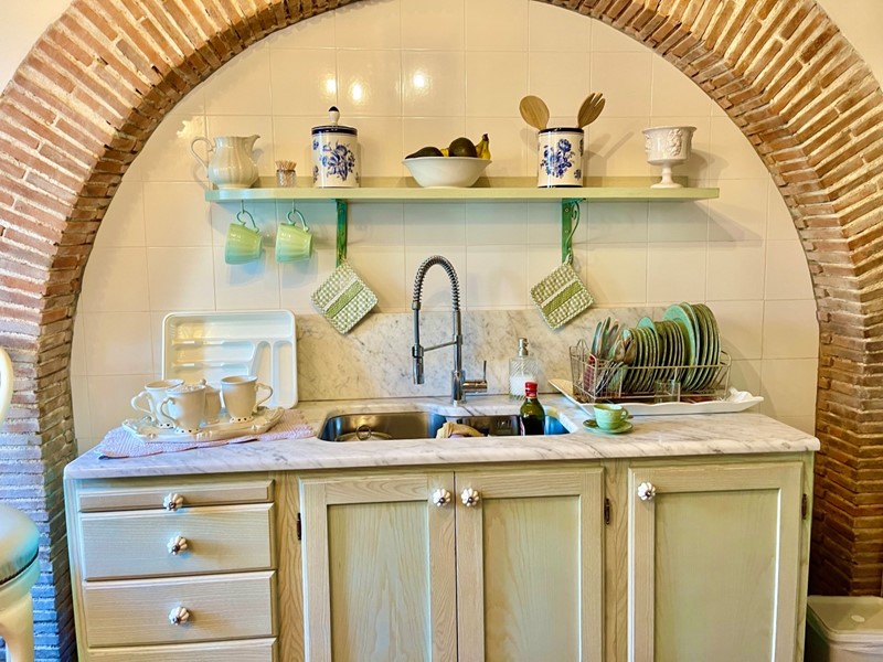La particolarità dei dettagli in sasso originali, i pavimenti in cotto, i travicelli sabbiati, le arcate in mattone, rendono l'immobile unico.