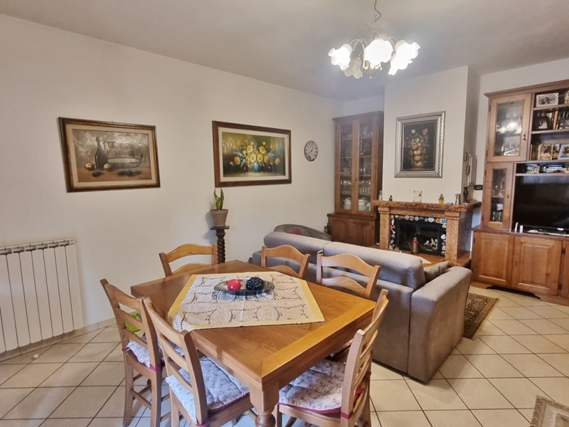 Dicomano nel centro del paese in piccola palazzina di soli 4 unità, appartamento 5 vani, composto da soggiorno con angolo cottura, 4 camere, doppi servizi, 3 ripostigli, balcone, termo singolo e termo camino, oltre posto auto esclusivo. Buono stato.