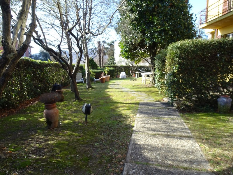 Porzione al piano terra di trifamiliare composta da ingresso indipendente in giardino, porticato, soggiorno, cucina, tre camere e due bagni. Completano la proprietà ampio garage e spaziosa cantina al piano sottostrada. Attualmente locato.