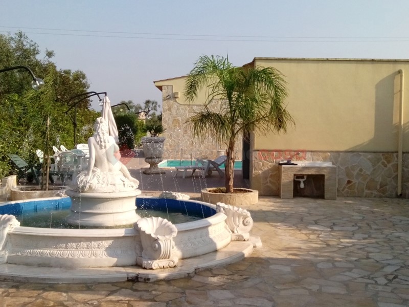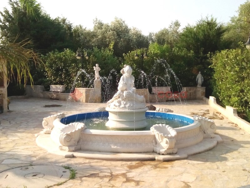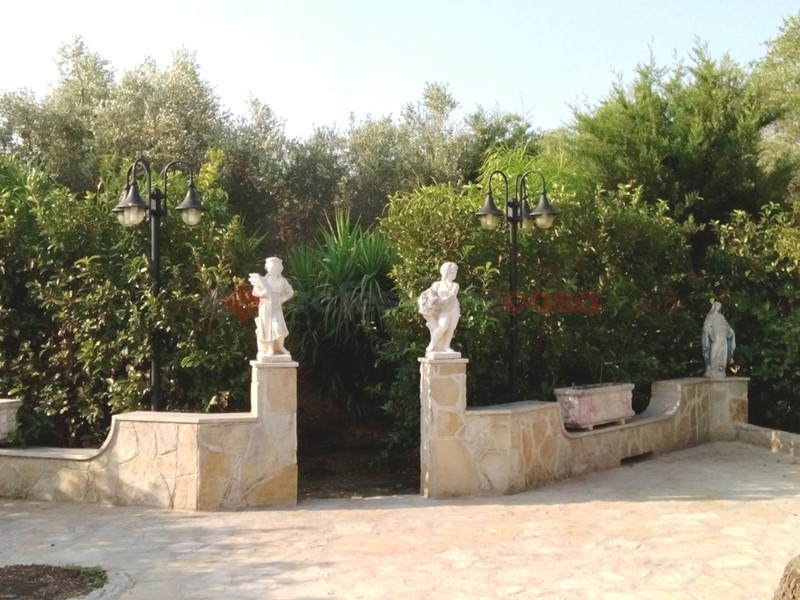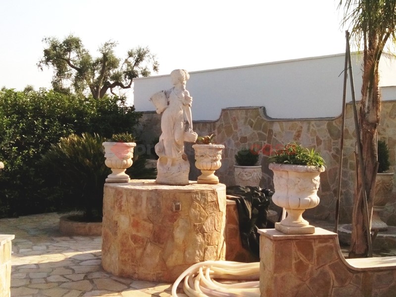 L'esterno propone un piazzale pavimentato in pietra impreziosito da statue ed una graziosa fontana collocata tra la piscina ed il forno a legna. L'aera del giardino si estende per un totale di 1000 mq circa ed è inoltre dotato di alberi d'ulivo e da frutto.