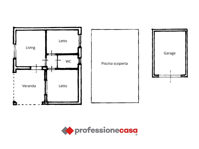 Il copro di fabbrica ha superficie commerciale di 85 mq circa, è composto da 3 vani oltre accessori ed è dotato di veranda esterna coperta, zona di assoluto relax. La zona giorno è caratterizzata da un ambiente unico soggiorno/cucina con angolo camino, mentre la zona notte è composta da due camere matrimoniali e un bagno.
