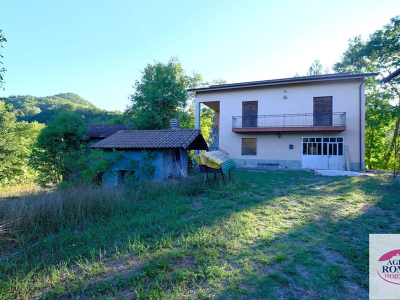 Casa indipendente bifamiliare composta al piano terra da ingresso,cucina,dispensa,bagno,camera oltre che a grande cantina e centrale termica;al primo piano a cui si accede da scala esterna troviamo un disimpegno,soggiorno,ripostiglio,sala,due camere e balcone.Fanno parte del lotto un altro fabbricato su due piani attualmente adibiti a magazzini e 2 piccoli fabbricati adibiti a locali di sgombero.La casa è circondata da un appezzamento di terreno pianeggiante ad uso pascolo o seminativo ed un piccolo boschetto che confina con il torrente.