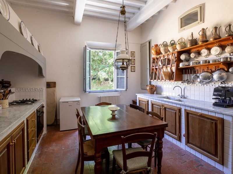 Una villa storica dal carisma unico, una casa dei custodi, una incantevole limonaia ed una graziosa legnaia, circondate da una proprietà di circa sei ettari: questa è la “Tenuta Elegantia”. Trattasi di storico complesso architettonico, risalente alla fine del Settecento, inizi Ottocento, inserito in un contesto paesaggistico tipico toscano. La villa è distribuita su due piani fuori terra, oltre ad un piano sottotetto, completamente finestrato e dalle altezze molto generose, per un totale di circa 400 mq. I saloni charmant donano alla villa un tocco unico, la cucina dal gusto toscano è impreziosita da pregiati marmi di Carrara, le leziose camere da letto sembrano uscire da un libro delle favole. La villa può essere vissuta anche da più nuclei familiari, dati i vari accessi: questo non andrebbe a violare la sua prepotente bellezza. La casa dei custodi, distante pochi metri dalla villa, ha una superficie di circa 200 mq. distribuita su due livelli. La limonaia, un poetico angolo di paradiso, è a pochi passi dalla villa ed ha una grande potenzialità. Infine la legnaia, un annesso con varie funzioni. Il parco circostante, trattato in parte a prato, in parte ad oliveta e con del bosco, ha vari accessi alla pubblica via. “Tenuta Elegantia” in alcune sue parti, necessita di una ristrutturazione non massiva.